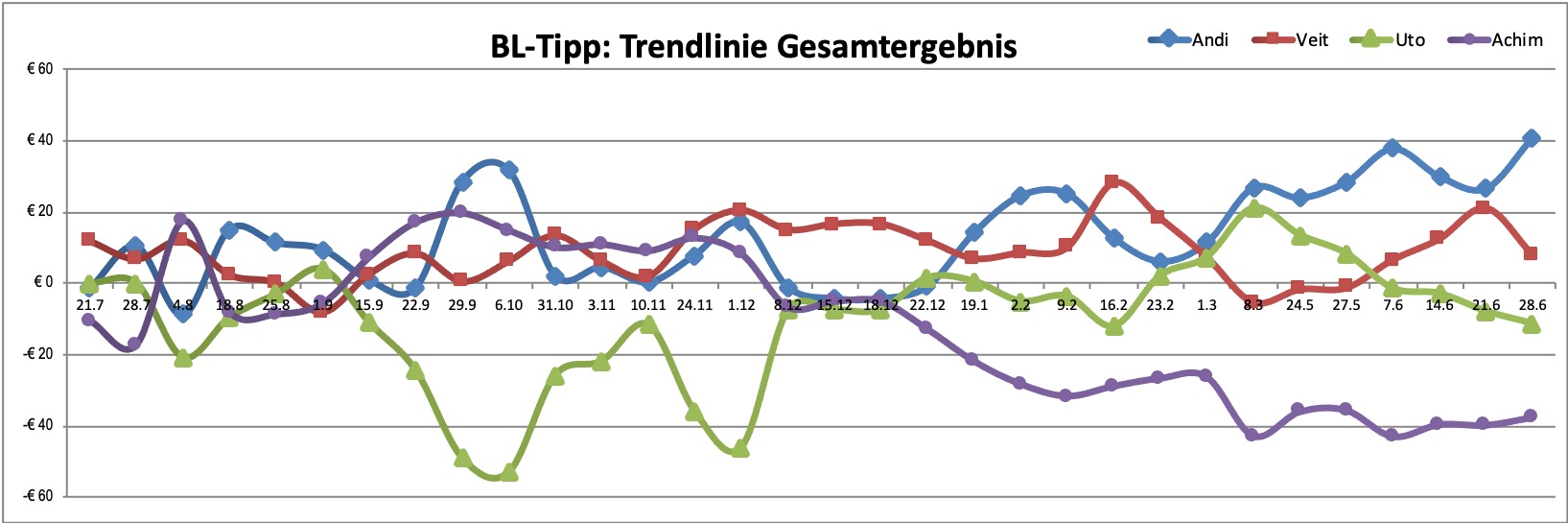 in den Tabellen: Alle gut getippten
