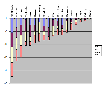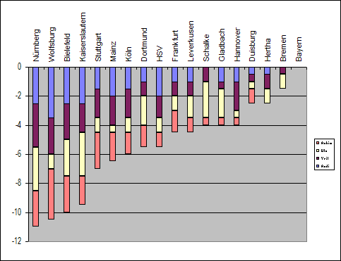 Tabellensummen: Grün bedeutet besser als der Mittelwert, Rot bedeutet